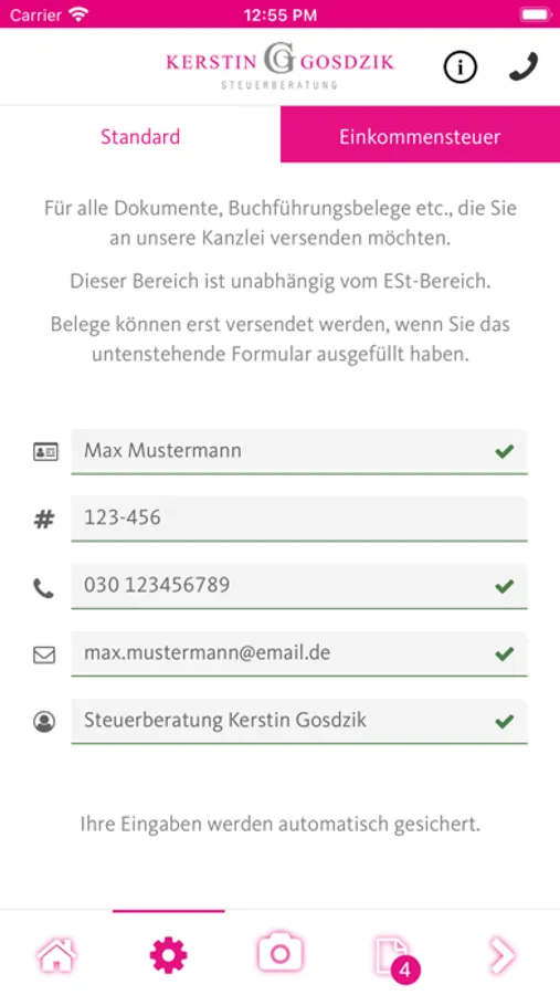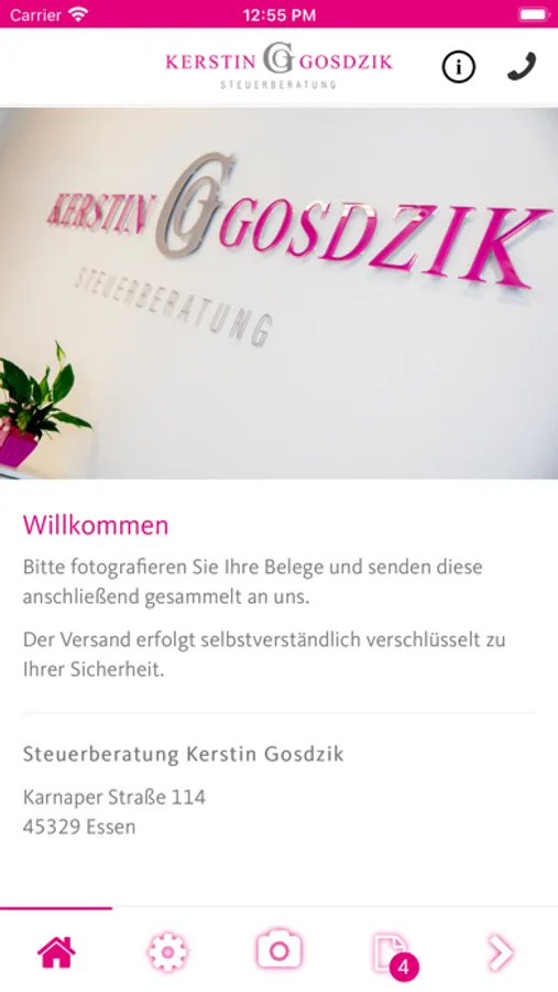 Sie können mit dieser App Belege, Dokumente und andere Schriftstücke schnell, sicher und komfortabel an die Steuerberatung Kerstin Gosdzik übermitteln.