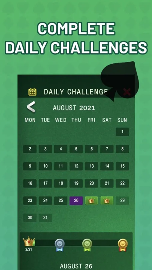 To solve this Solitaire Klondike card puzzle, you should move all cards of 4 suits - hearts, diamonds, spades and crosses to the Foundations. There is one deck - 52 cards in the classic Solitaire Klondike game.