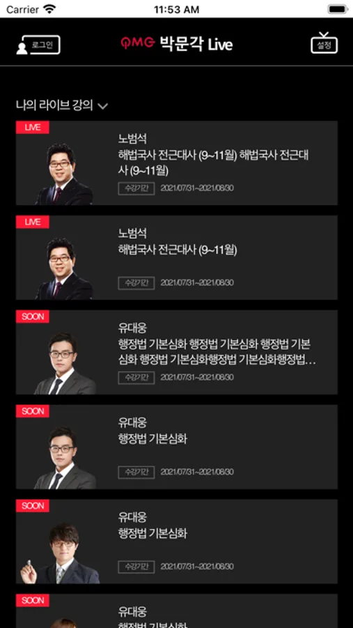 박문각에서 제공하는 라이브 강의를 이용할 수 있습니다