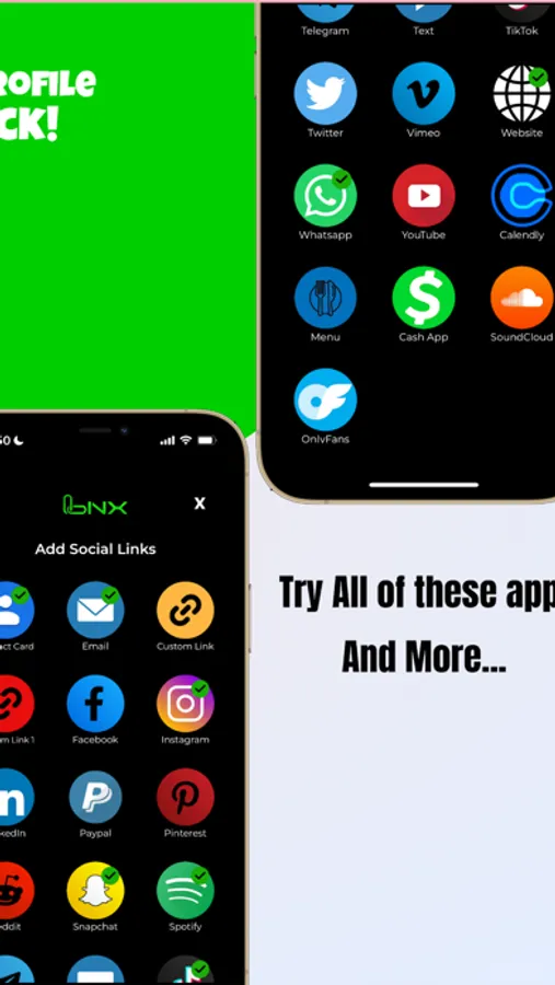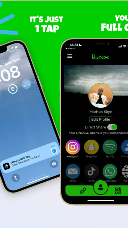 The new LINX App allows you to share your social accounts instantaneously. Connect your social media accounts, including Instagram, Facebook, Snapchat, TikTok, and others! To write and save all of this data, use our Linx Tags. You may share any of these profiles with any other iPhone user with iOS11 or above