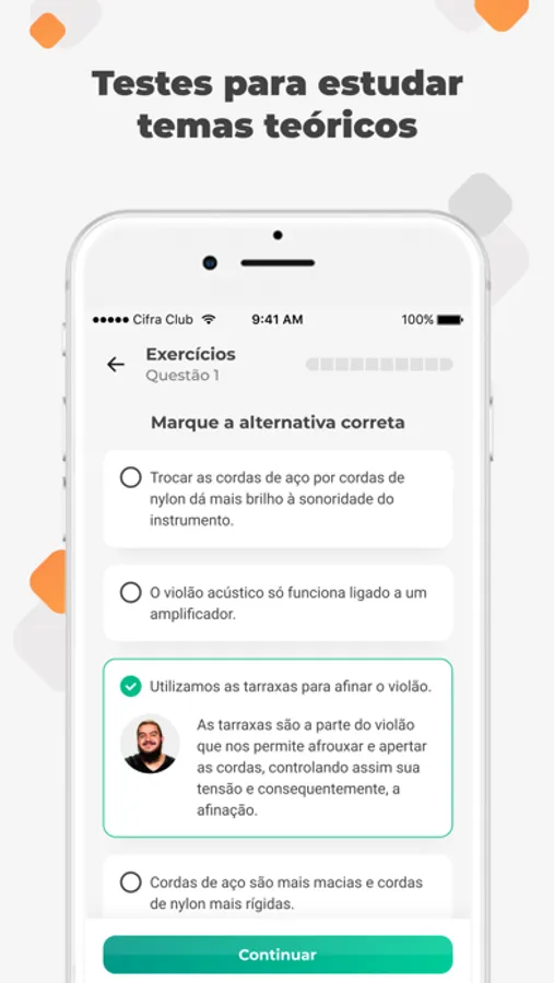 Aprenda violão, guitarra, baixo, canto e teoria musical. E aguarde: os cursos de teclado, ukulele e bateria chegam em breve!
