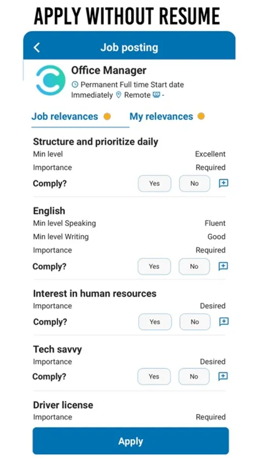 A mobile-friendly and easy to use job board. Apply to jobs without resume.