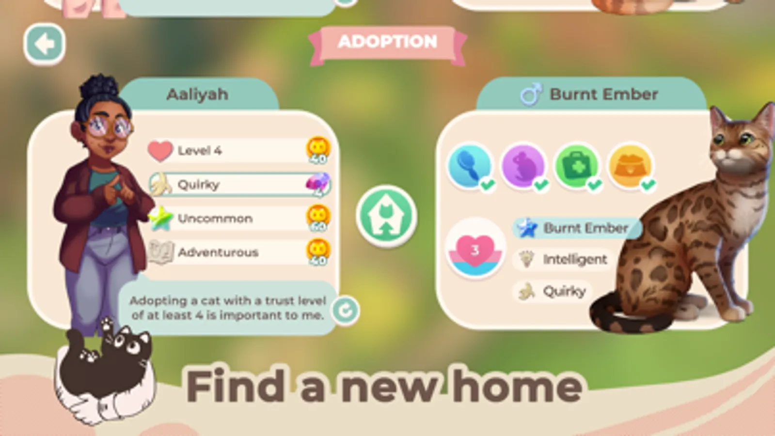 An abandoned cardboard box stands in front of a once beautiful house. A cat needs help and is waiting for you! In Cat Rescue Story, you take in cats, care for and feed them, play with them, treat all the kitties and when the cats are fully cared for, you can find a new pet lover for the cats. At the same time, you renovate and decorate the old house and make room for many new kitties. An exciting cat game with many challenging tasks!