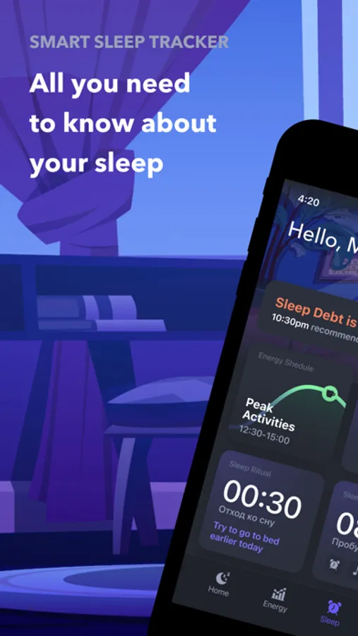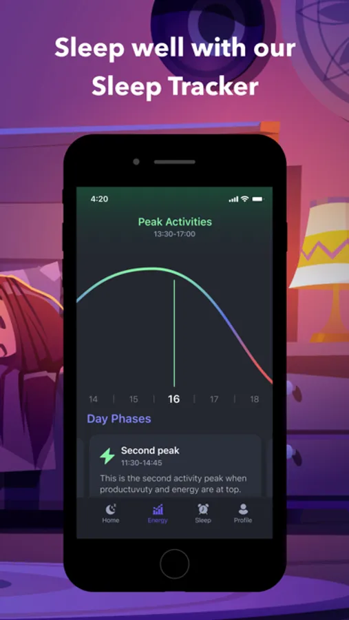Your energy throughout the day affects how you handle your work and other tasks. Based on your sleep schedule & quality Sleep Tracker calculates your brain activity patterns for a day and suggests the best time for productive work and other activities. Everyone has individual times when they should be sleeping and waking up, so we adopt exceptional algorithms to let you know when your peaks are and the best times to be sleeping.