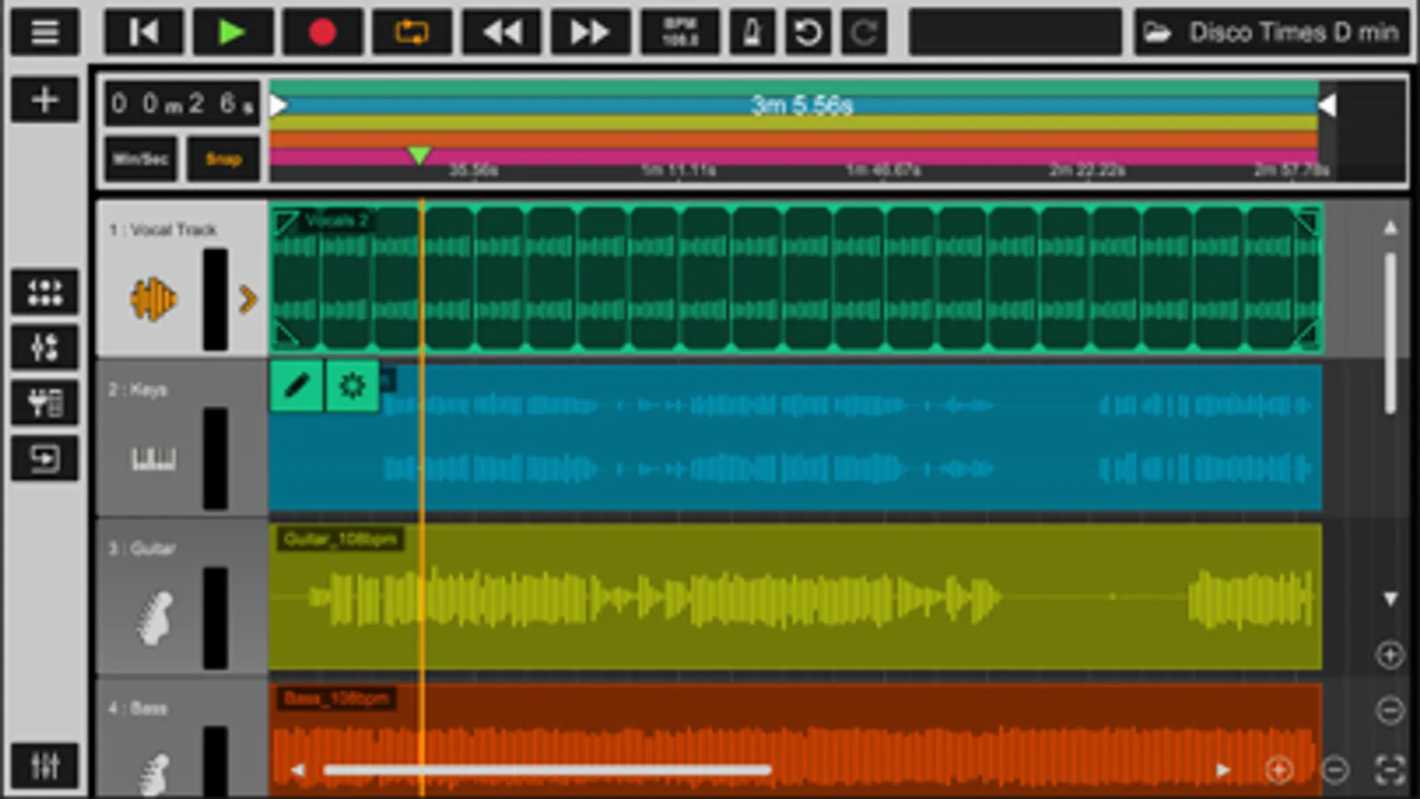 Many famous songs have been produced with 8, 16, or 24 tracks (and some only needed 1 or 2). Zentracker has unlimited tracks, so there are no bounds on your creativity. Craft complex layered textures and harmonies, overdub as much as you want, or use the over 200 included audio loops to fill out your productions. The intuitive mixing console lets you adjust each track's level and pan position with a touch and features 16 audio effects for professional-sounding results that don't require a degree in audio engineering.