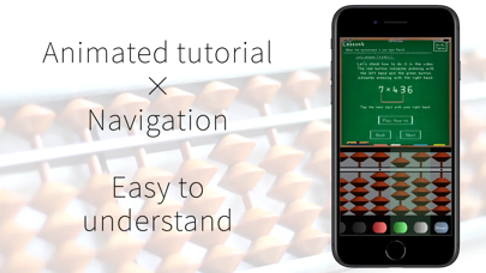 In the app, we will explain simple and fast method of the multiplication using the abacus.