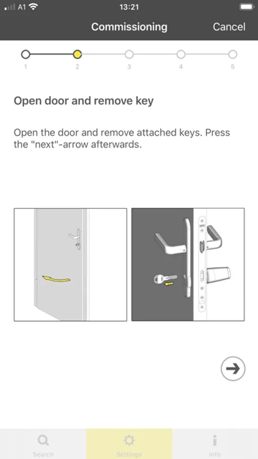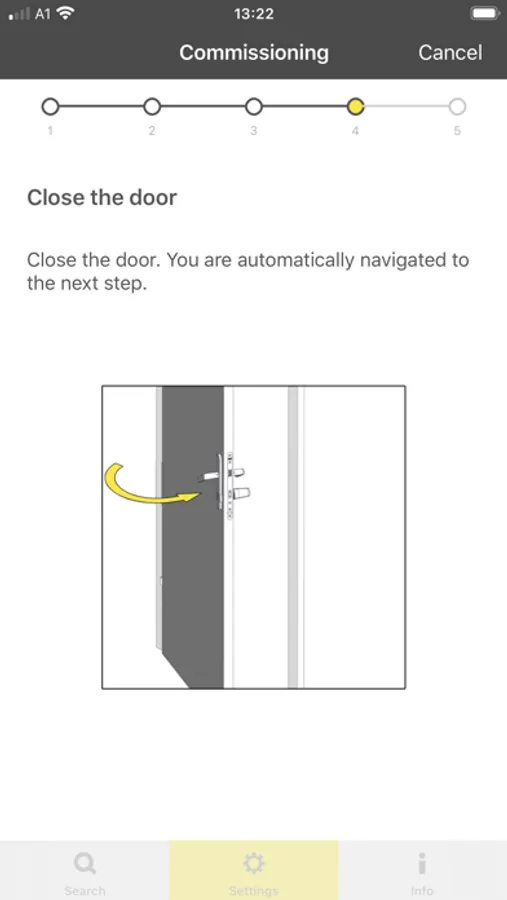 Already fitted EMZY to your door? After installation, you can start using with the configuration app. During commissioning, EMZY learns the locking and door parameters and configures its torque accordingly.