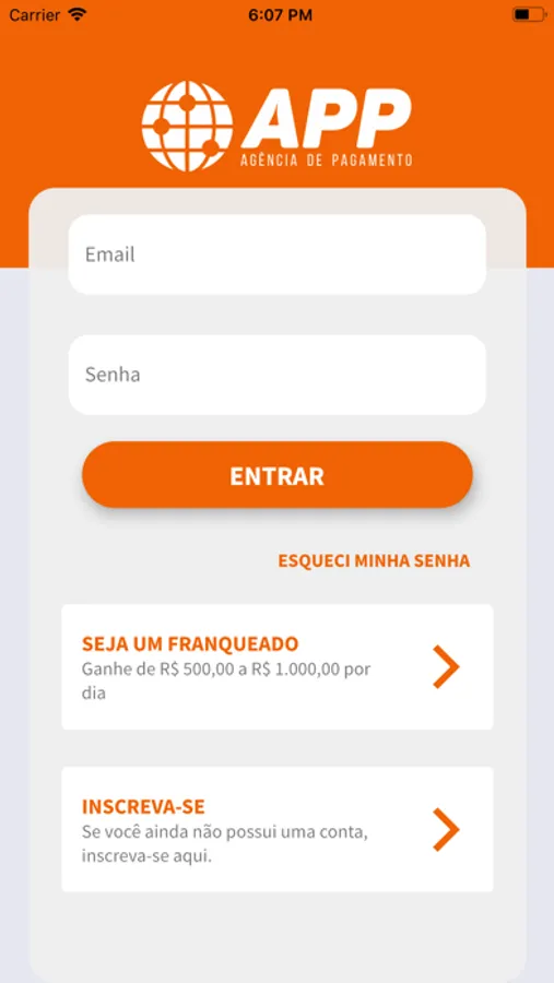 Crie um cadastro como franqueado no aplicativo e você pode gerar de R$ 500,00 à R$ 1.000,00 por dia com a micro franquia da Agência de Pagamento.