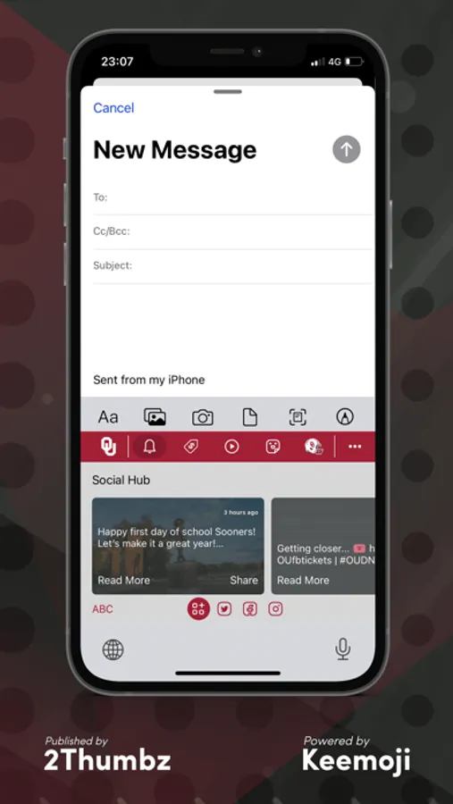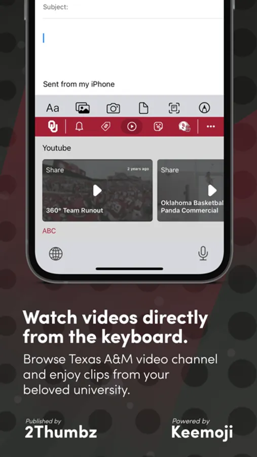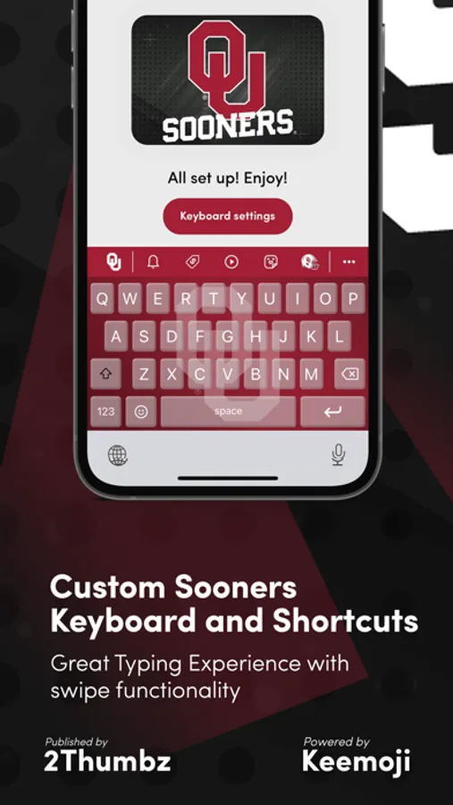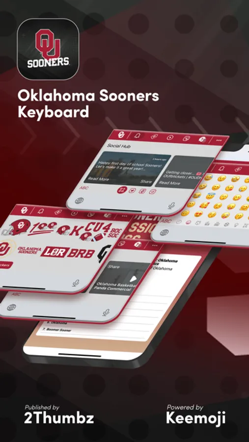 Oklahoma Sooners Keyboard is the officially licensed fan app for enjoying the full OU Athletics experience. This app is owned and published by 2Thumbz, a leading mobile app development company and a trusted collegiate publisher since 2003.