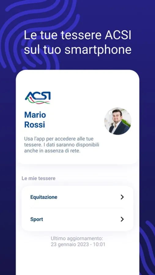 L’app ufficiale ACSI permette ai tesserati di accedere alle proprie informazioni e di avere a portata di mano tutte le tessere sportive in formato digitale.