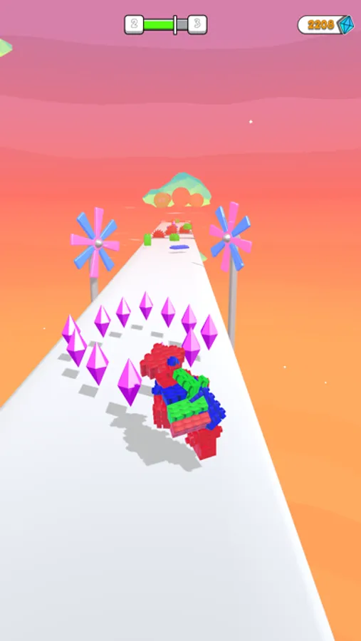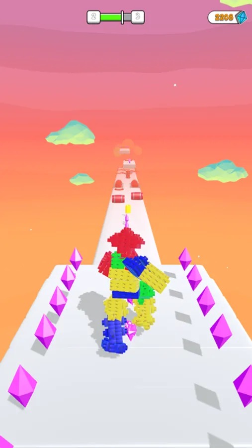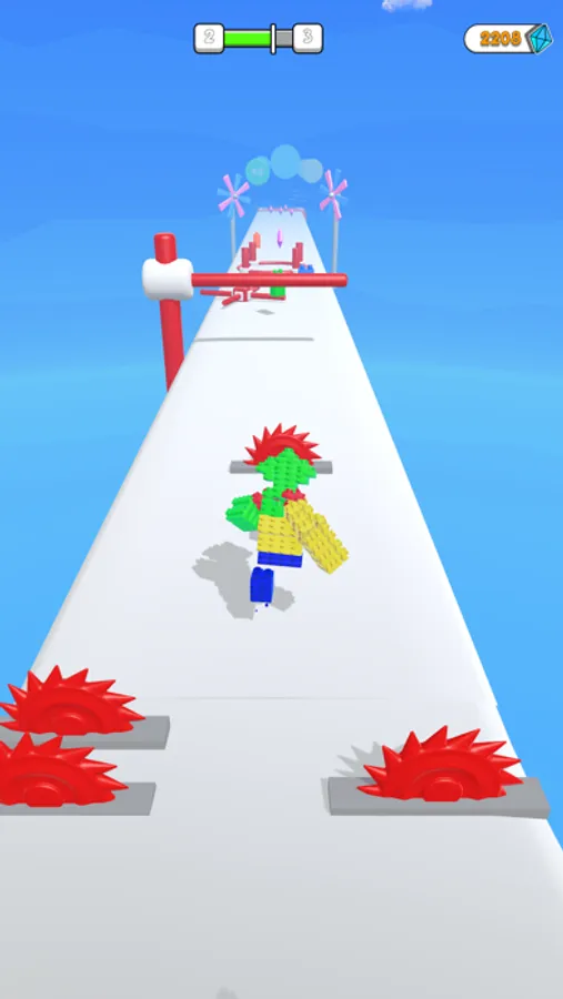 Collect the brick pieces and complete your character. Be careful to obstacles.