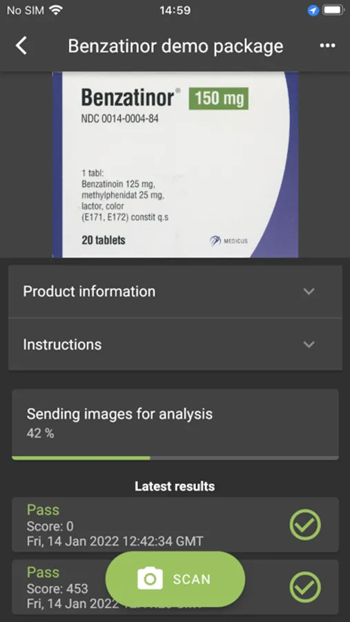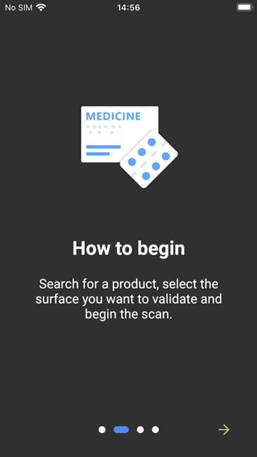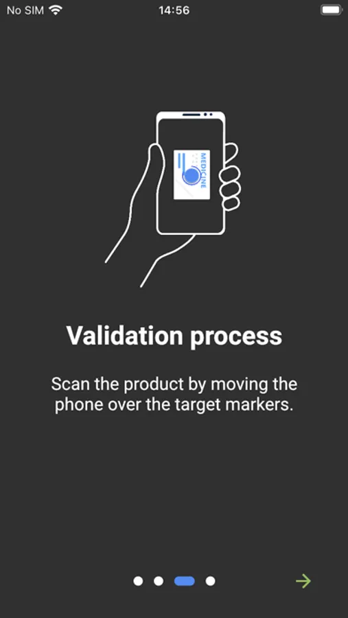The application guides the user along the scanning process in easy and intuitive steps. The user moves their phone on pre-set areas on top of the product or product package and the application captures images automatically when correct alignment is achieved. The operation is completely push-free, meaning that no physical or digital buttons need to be pressed during the scanning process, everything is done automatically. This is convenient if the user needs to use the application while wearing gloves.