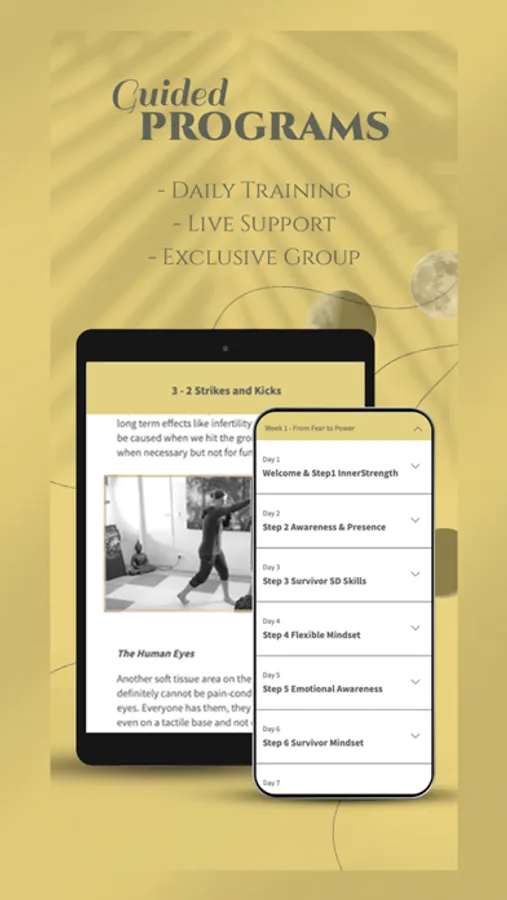 Start with our Programme FROM FEAR TO POWER to ignite a wholesome empowerment through a connection within yourself and learning simple and effective survival tools, so that you will be walking this world sexy AND safe.