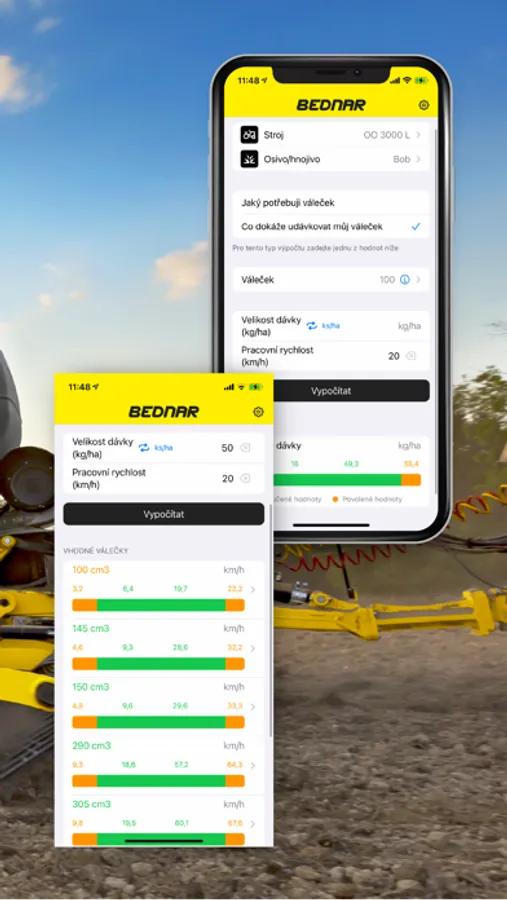 The BEDNAR Rollers app will recommend a suitable type of the seeding roller based on the entered parameters, which will guarantee precise and quality seed and fertilizer batching.