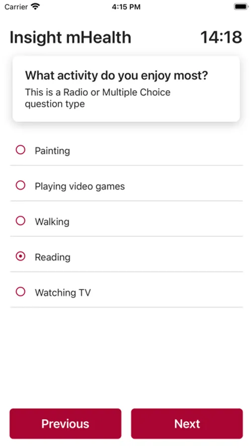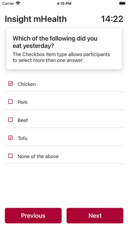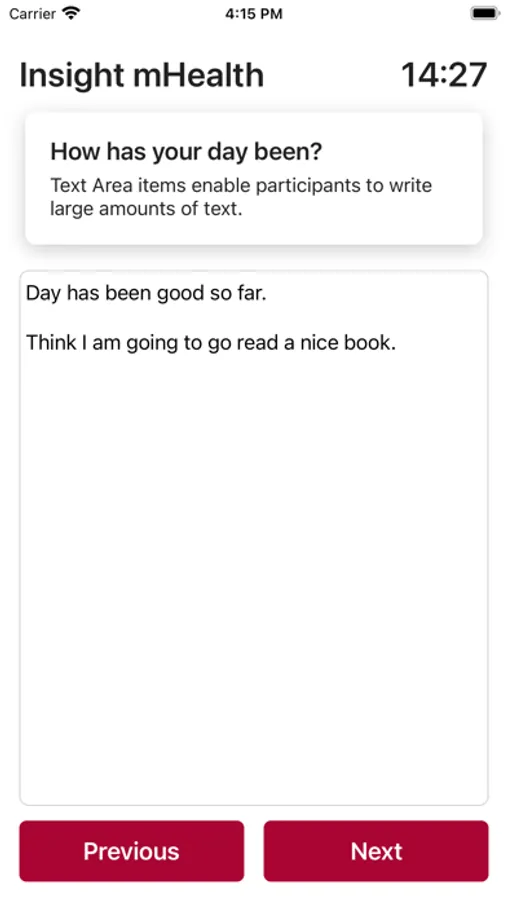 The Insight mHealth Platform is a system for administering EMA (Ecological Momentary Assessment) studies on mobile devices.