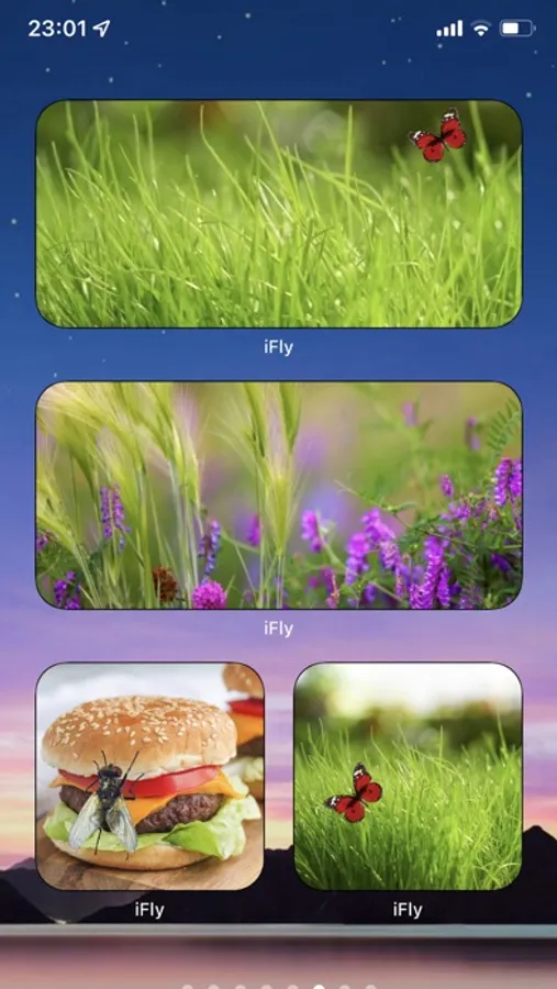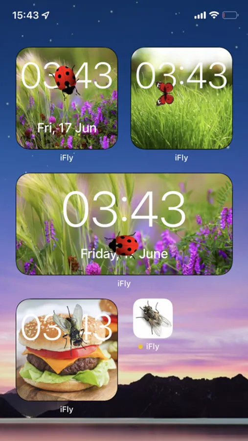 Add iFly Widget and you will be able to diversify your life. Make a personal and unforgettable desktop. Optionally, you can instantly find out the time, date and battery level, as well as look at the some insectes