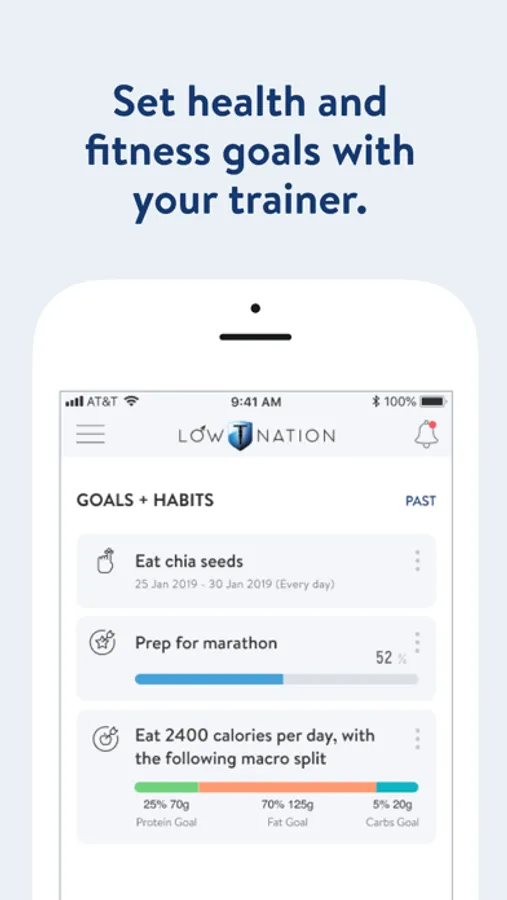 Welcome to the Low T Nation App! The exclusive app for Low T Nation Patients. Here is where we will begin your transformational journey. This app allows you to work with your wellness coach to: