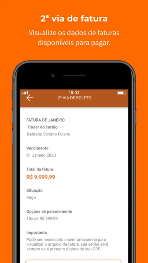 • Ver detalhes das faturas e gerar boleto para pagá-las;