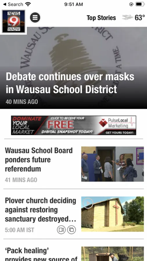 News 9 is central Wisconsin's source for local news, weather and sports coverage all in one place. Whether it's breaking news in Wausau, Wisconsin Rapids, Stevens Point, the Northwoods, Marshfield, Rhinelander, Merrill, Weston, Wood County, Marathon County, or on the other side of the world, WAOW has you covered.