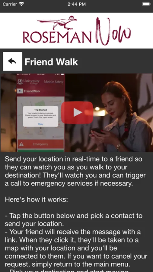 Roseman Now is the official safety app of Roseman University of Health Sciences. It is the only app that integrates with Roseman University of Health Sciences' safety and security systems. Campus Security has worked to develop a unique app that provides students, faculty and staff with added safety on the Roseman University of Health Sciences campus. The app will send you important safety alerts and provide instant access to campus safety resources.