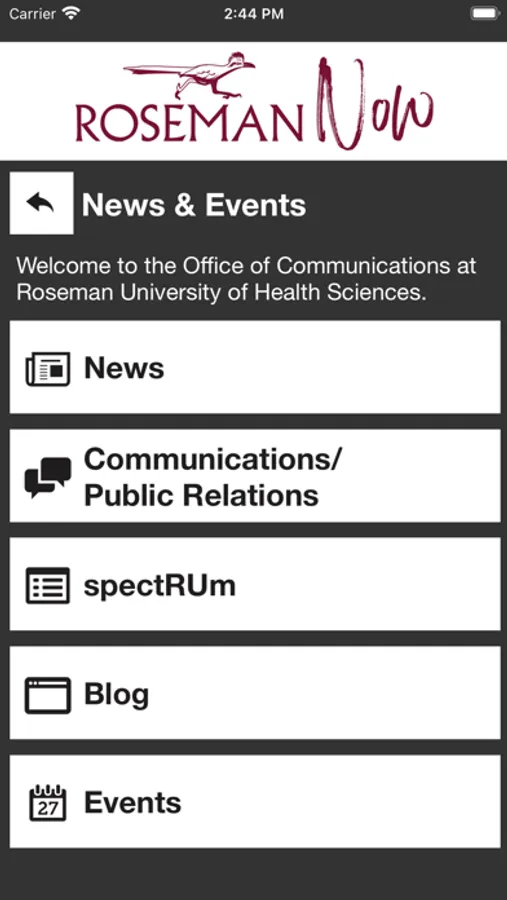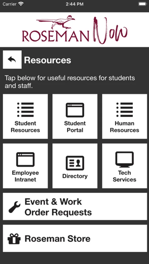 - Resources: Access support resources in one convenient app to enjoy a successful experience at Roseman University of Health Sciences.