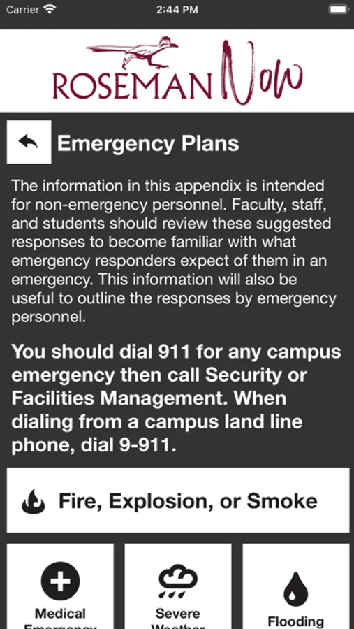 - Emergency Plans: Campus emergency documentation that can prepare you for disasters or emergencies. This can be accessed even when users aren’t connected to Wi-Fi or cellular data.