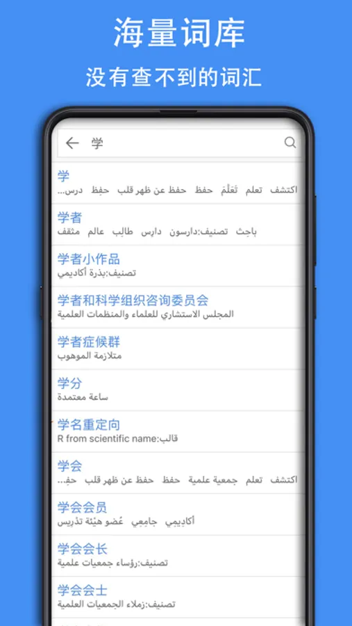 1. 超大的詞彙量。全網詞彙量最豐富的阿拉伯語漢語詞典