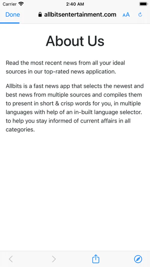 Allbits is a fast news app that selects the newest and best news from multiple sources and compiles them to present in short & crisp words for you, in multiple languages with help of an in-built language selector. to help you stay informed of current affairs in all categories.