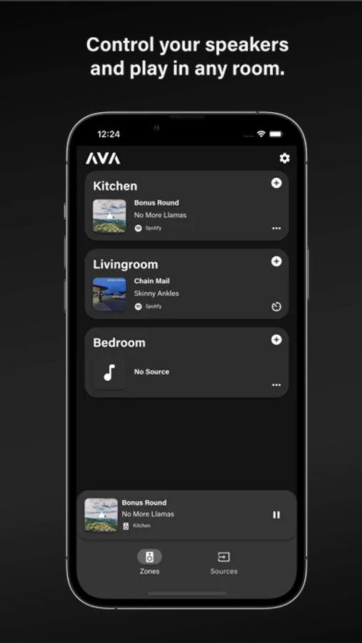 The official app to enjoy your music on all your AVA speakers. The AVA app allows zone control, instant access to favorites and multi-room volume control.
