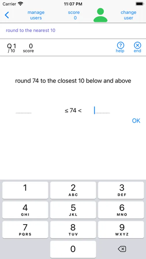 The app contains nearly 50 exercises. Each exercise is a mini program that creates questions and corrects the answers. The questions change every time. The exercises are sorted by level of difficulty, and each exercise is accompanied by help material.