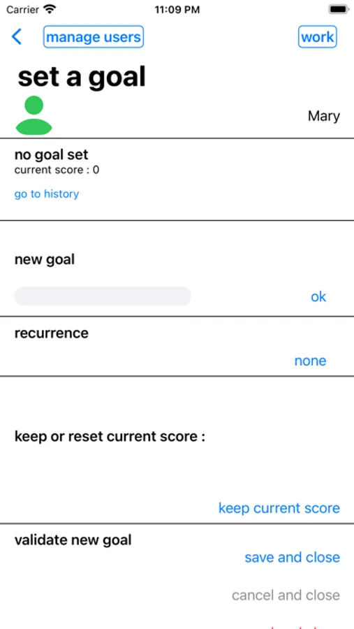 For the student, a score is displayed to show results and progress on current goals ; a history is available to measure progress and results over time.