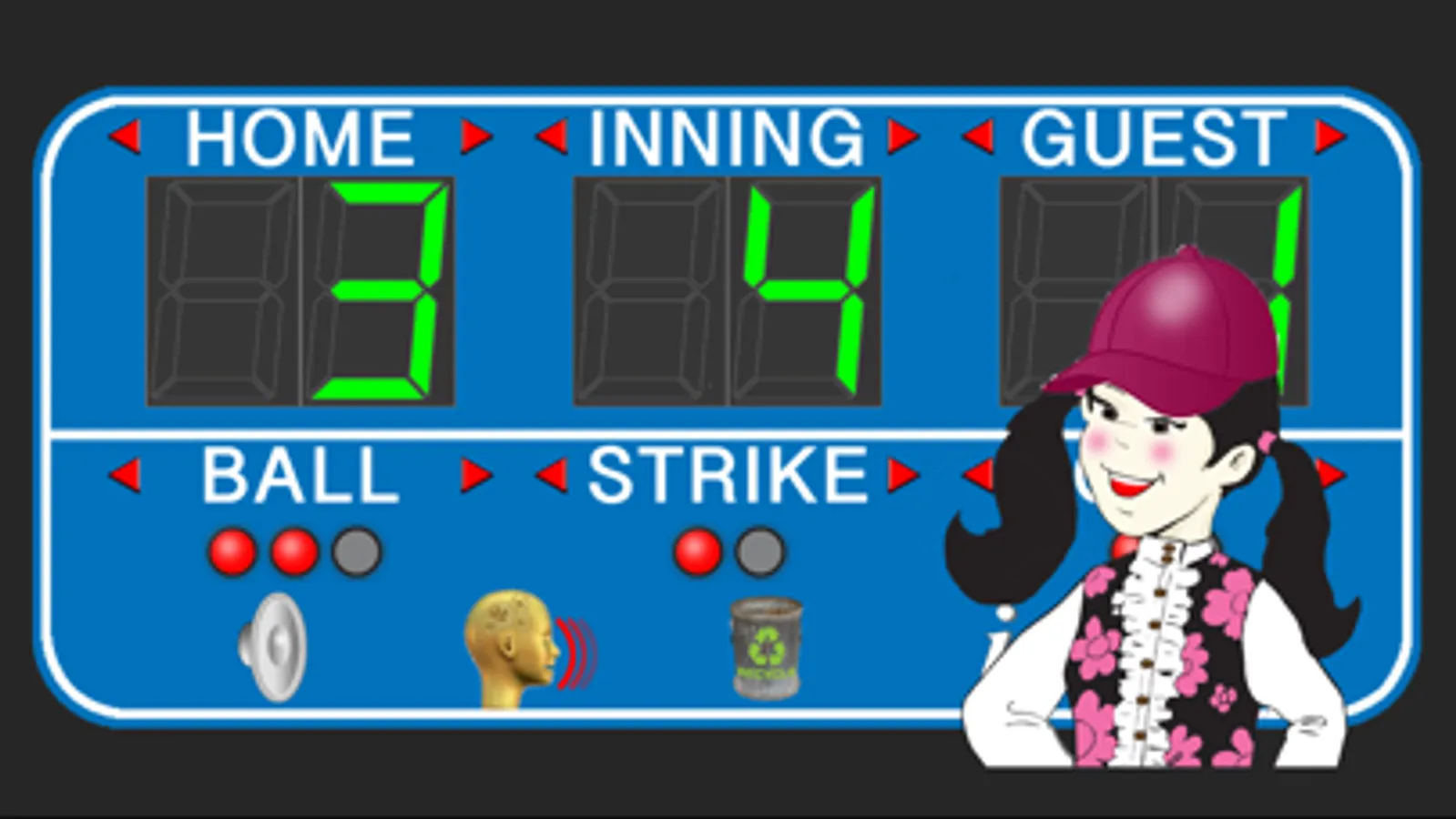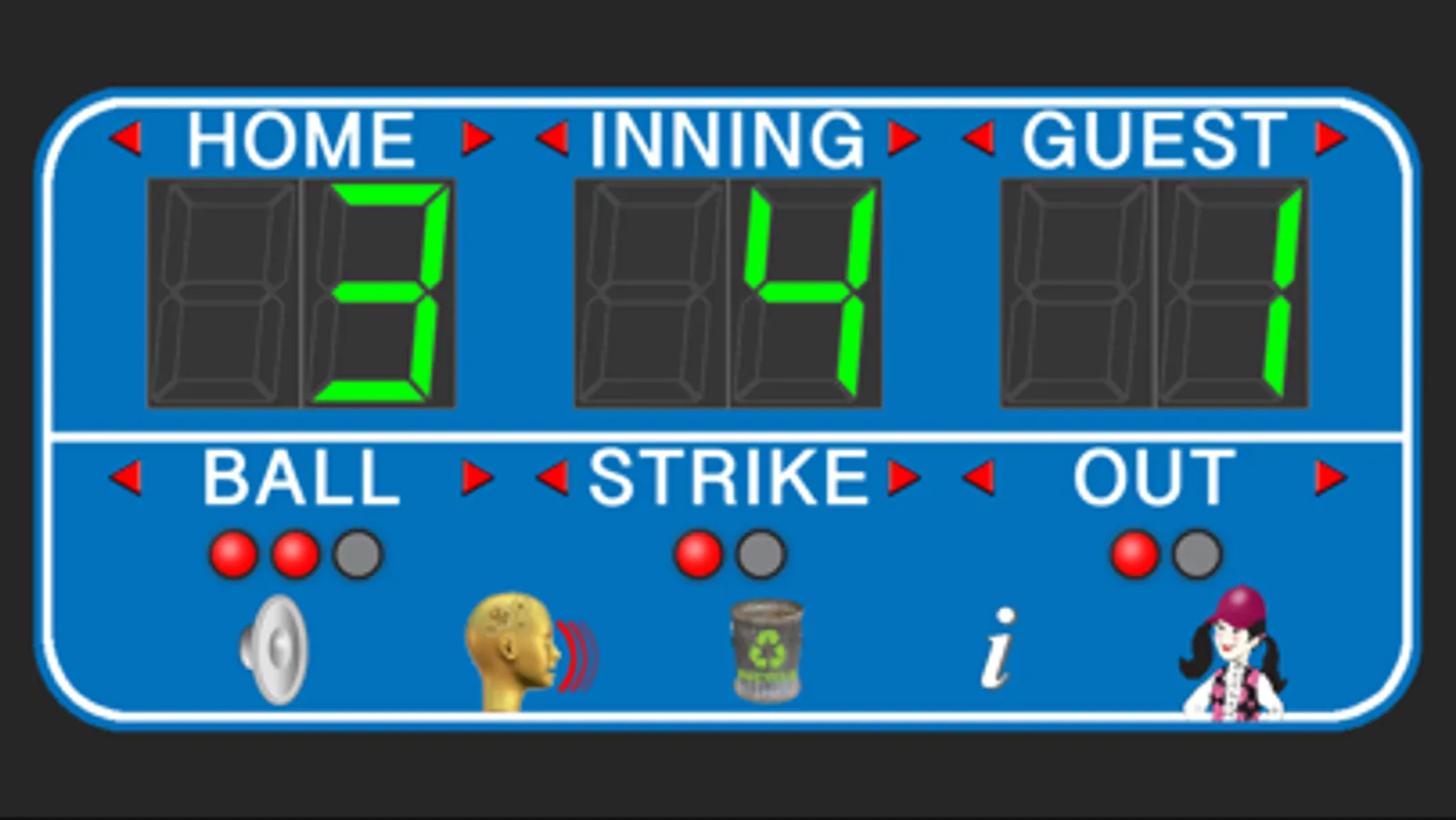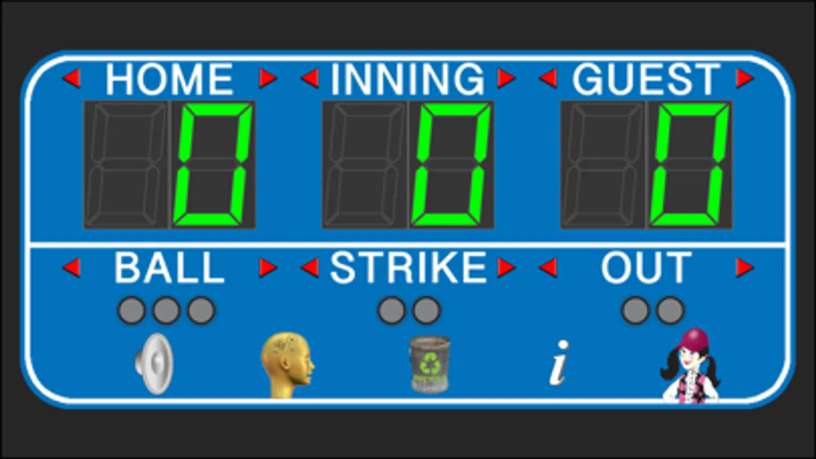 Baseball Scoreboard is a simulation of a simplified scoreboard typically found at community baseball fields. The app is useful in any situation where it is necessary to keep an accurate score for a baseball game.
