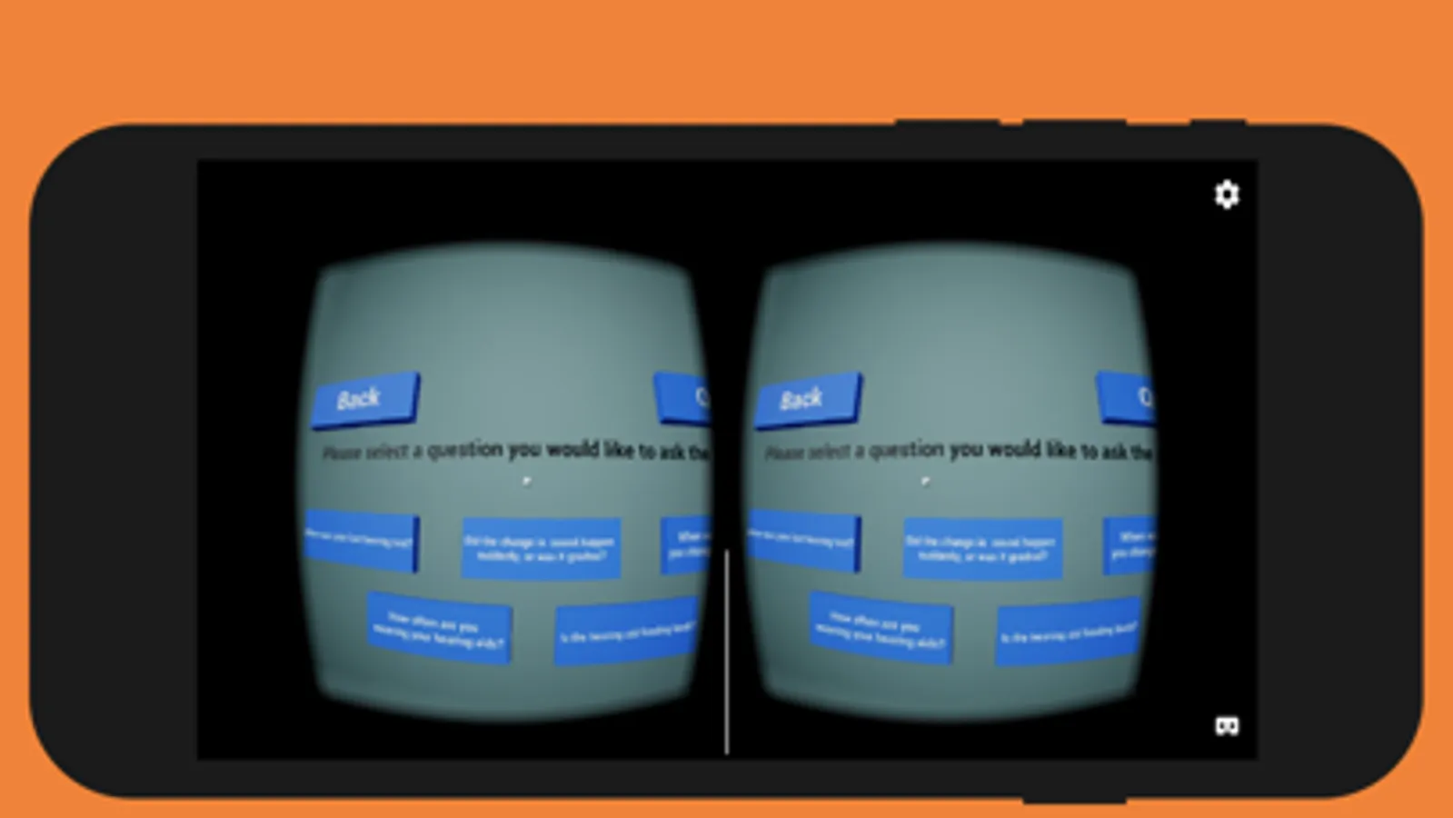 In the application, a simulation occurs where the student must help a patient with their hearing aid. The application’s environment is created from 360-degree videos and embedded with interactive branching stories. The video includes actors/actresses that perform the scripted scenario. During the application, the video pauses and presents the student with choices to select from. Based on the selection, the student progresses in the scenario or is informed they made an error in their selection and returns to an earlier point in the simulation.