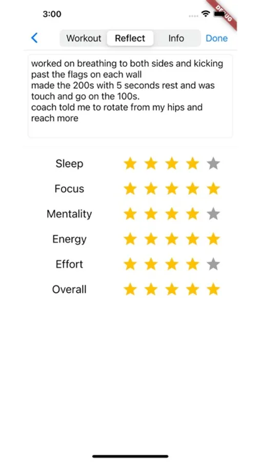 - Reflection - reflect on what you worked on and record stats like your mentality, sleep, and effort
