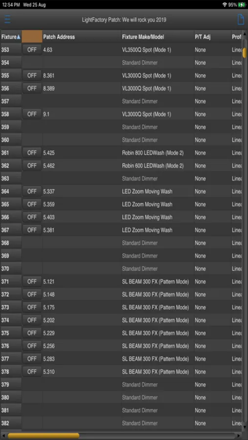 The patch tool allows the user to download patch data from a LightFactory or NEO system doe reference and editing. Once downloaded to the device you do not need to be connected to the lighting network to view or edit the patch data.
