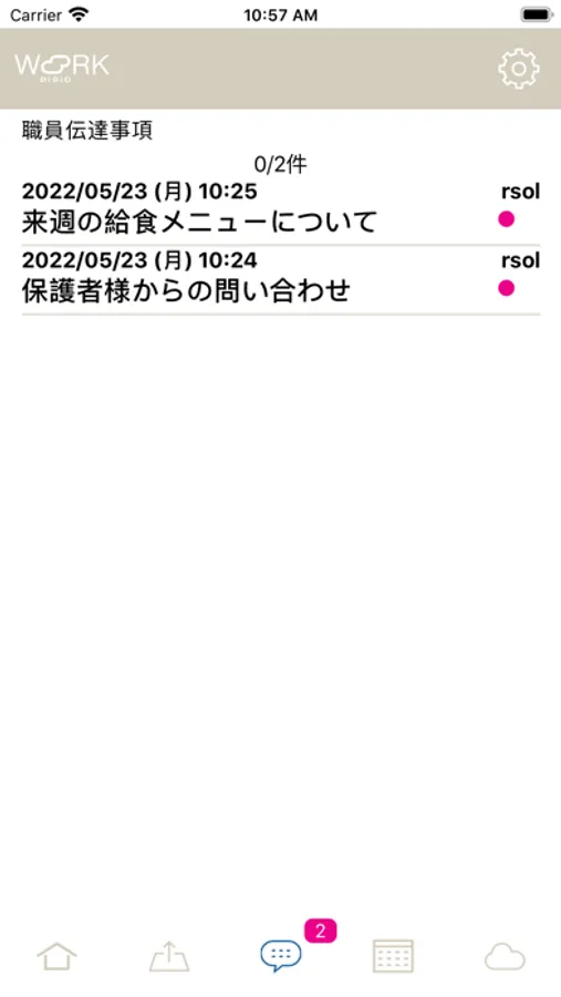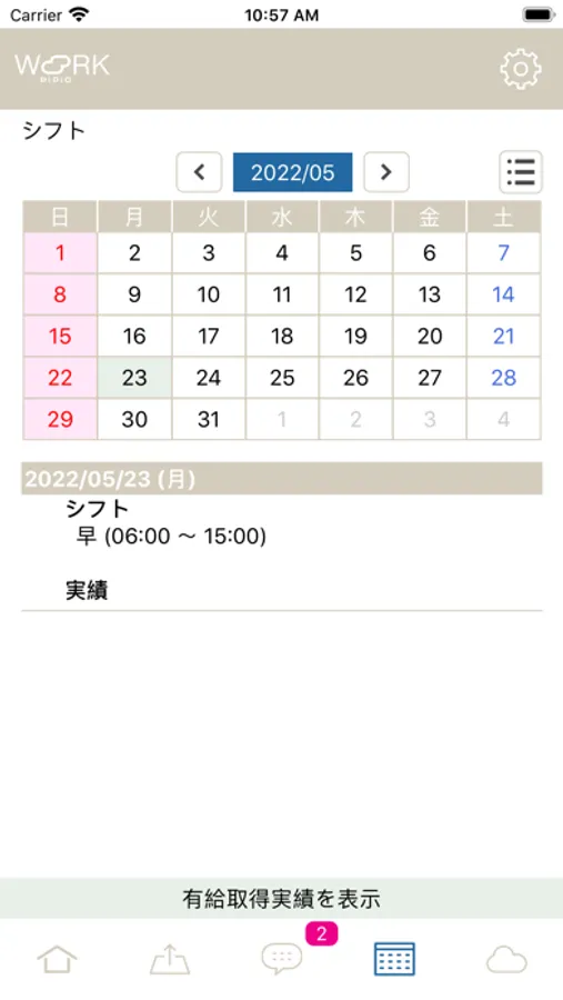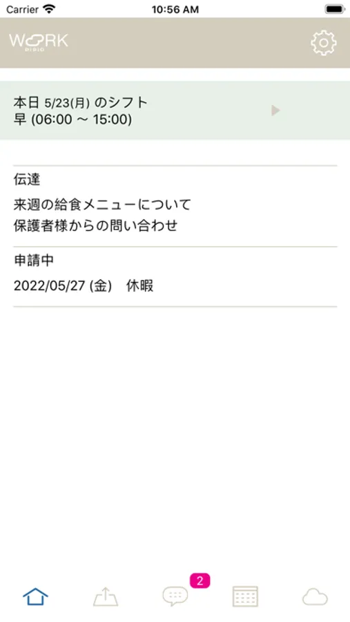 シフトや有給休暇等の申請や確認をすることができ、職員への連絡の受信も可能です。