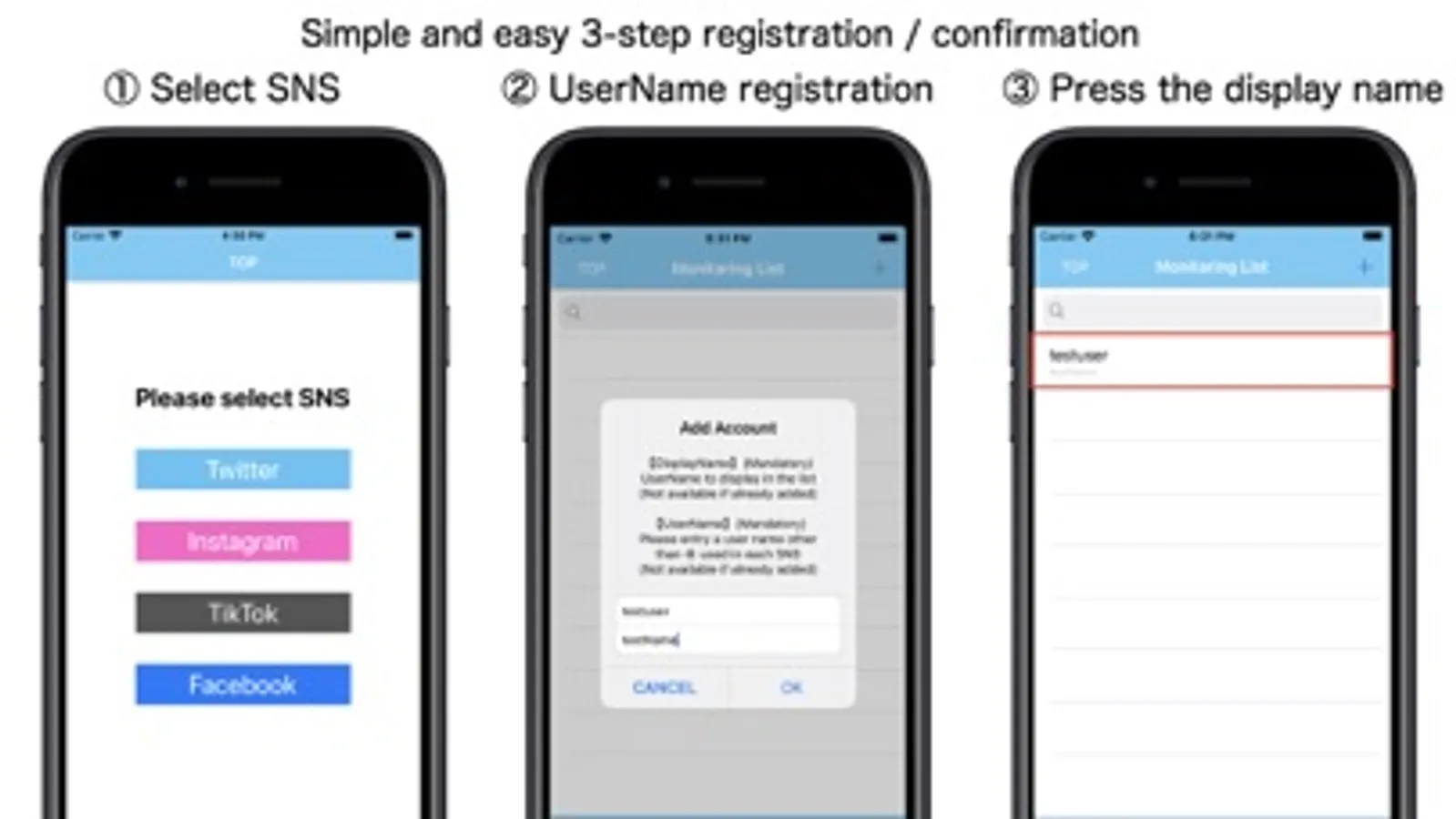 You can jump to the user page you want to check from the monitoring list at any time just by registering the user name of the user page you want to check.