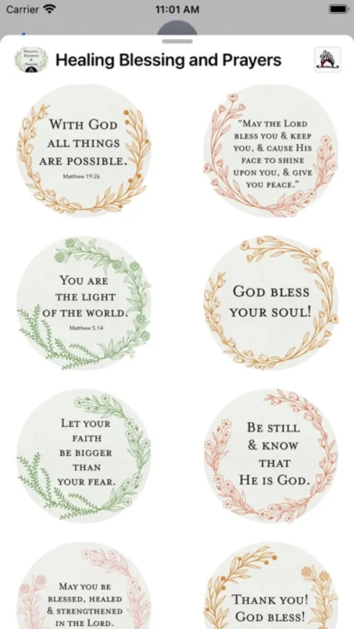 This stickers pack comes with inspiring and encouraging greetings, blessings and prayers, with motivational and inspirational scriptures and bible verses. Send your love to someone that you know needed it most or someone that you would like them to know about GOD, this will be a good way to start the conversation.