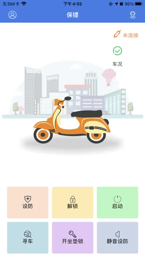 主页模块中,你可以了解到电动车的码数以及电量等信息,并且可以控制报警器。