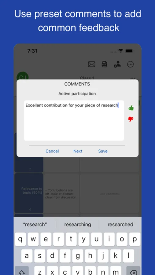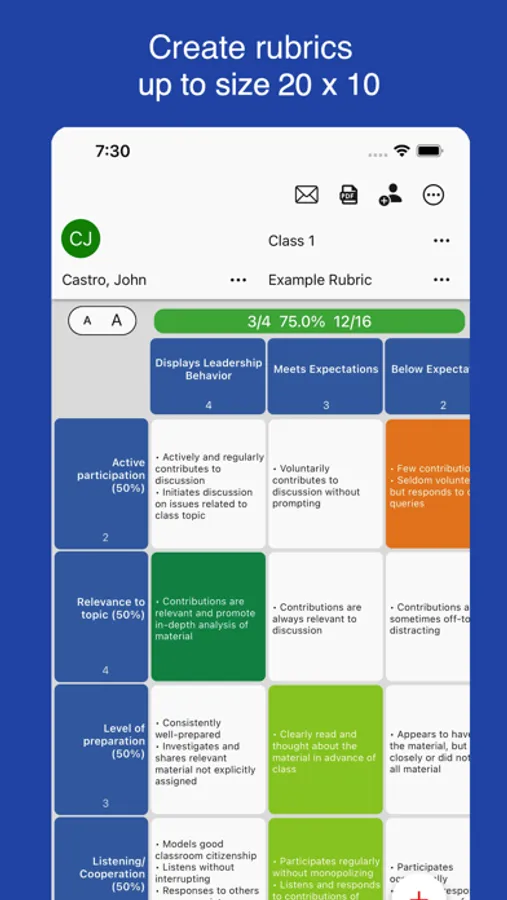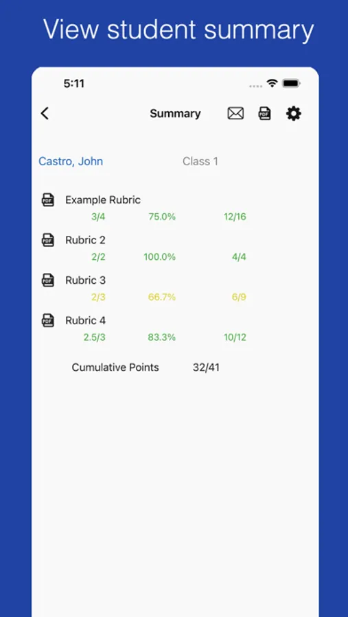 • Email all students in a class a copy of their rubric with 1 tap.