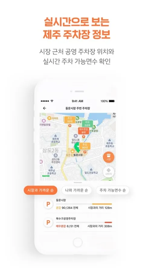 - 시장 근처 주차장 위치와 상세정보 및 혼잡도 정보를 공유합니다.