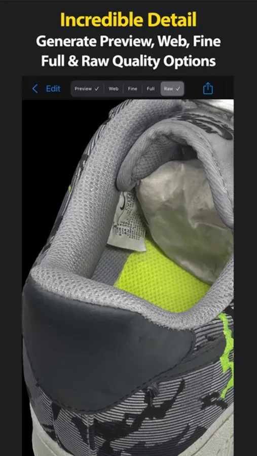Never has their been an app that creates such life-like 3D Models so easily! Use your 3D models on your website to sell your goods or import the 3D files to your professional 3D app with ease!
