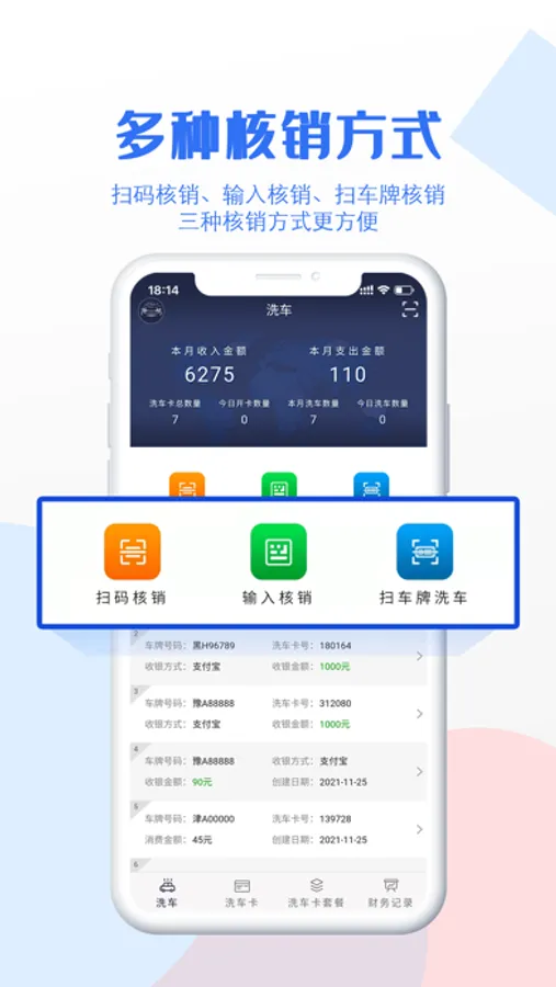 2、快捷的办理电子洗车卡,以及洗车核销;