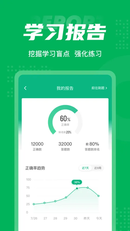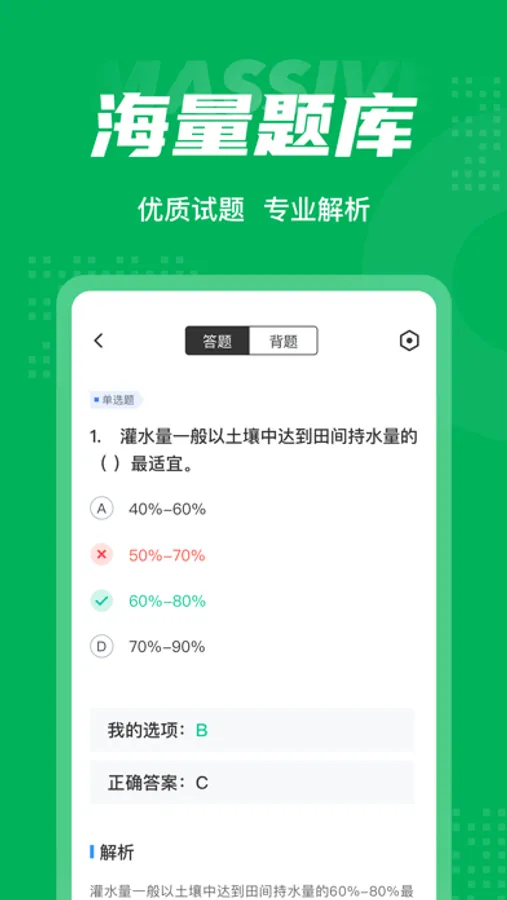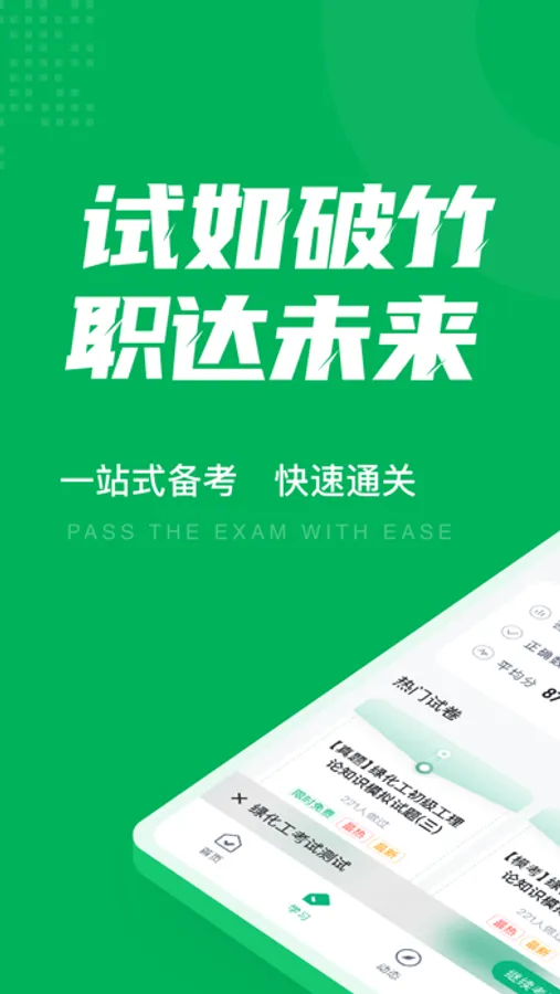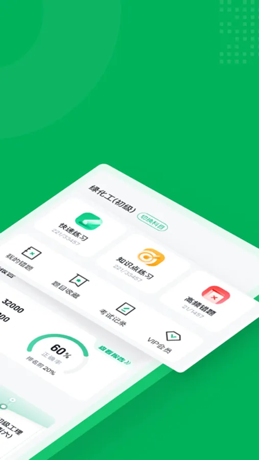 绿化工题库内含考点练习,全国通用卷以及地区卷模拟练习,以及按照固定考试比重的随机式的抽题的真题考场,成绩单实时记录考试数据,一点一滴的反馈考生近期学习状态以及自我正确率的提升,大大的给予考生通过考试的信心。