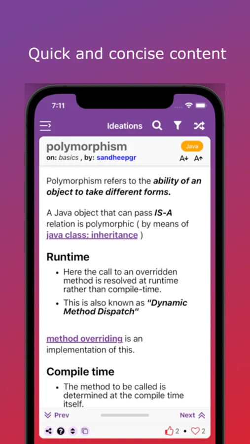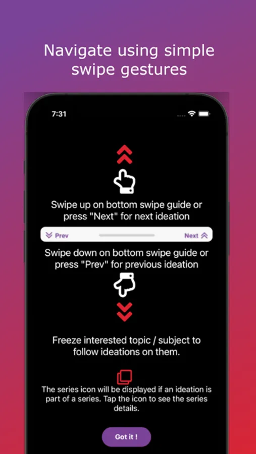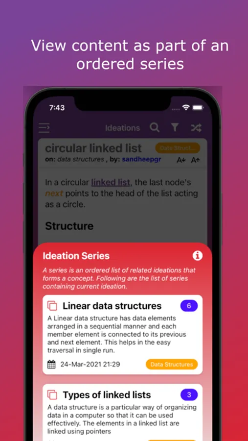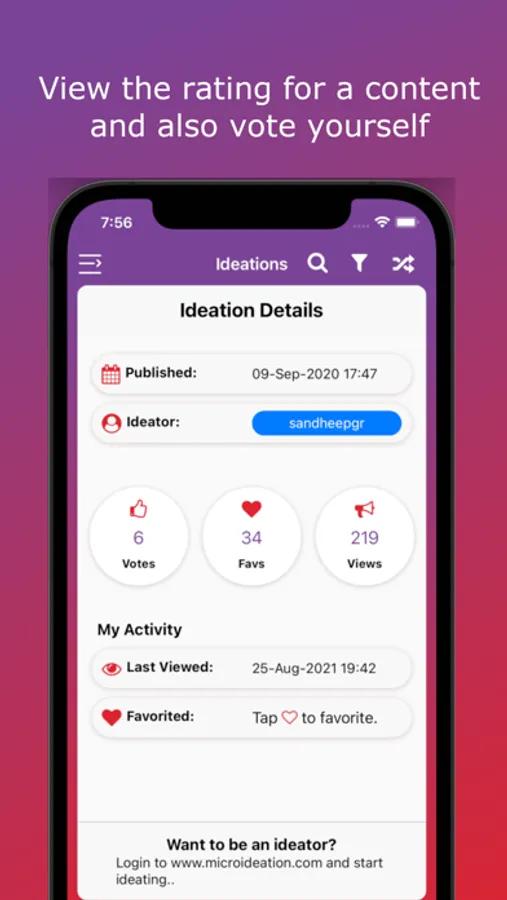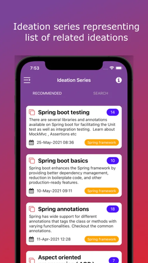 Microideation app redefines the learning experience by presenting the explanation for topics as ideations. A microideation (or ideation ) is a concrete explanation of a topic within 500 characters created by subject-matter-experts on the field using rich formatting and images. You can navigate the ideations using simple swipe gestures and each swipe brings up a new unseen content based on preferences. This allows for the continuous discovery of relevant ideations irrespective of whether you are on a metro train heading home or while having a peaceful cup of morning coffee.