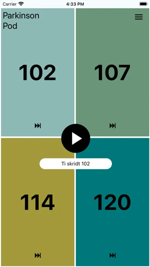 ParkinsonPod is music specially composed for Walking. Captivating music with a very clear rhythm. Made in different music genres: marches, pop, pop-rock, and funk as well as a drum groove. Made in 4 tempos: 102, 107, 114, and 120 (indicates how many steps you walk per minute).