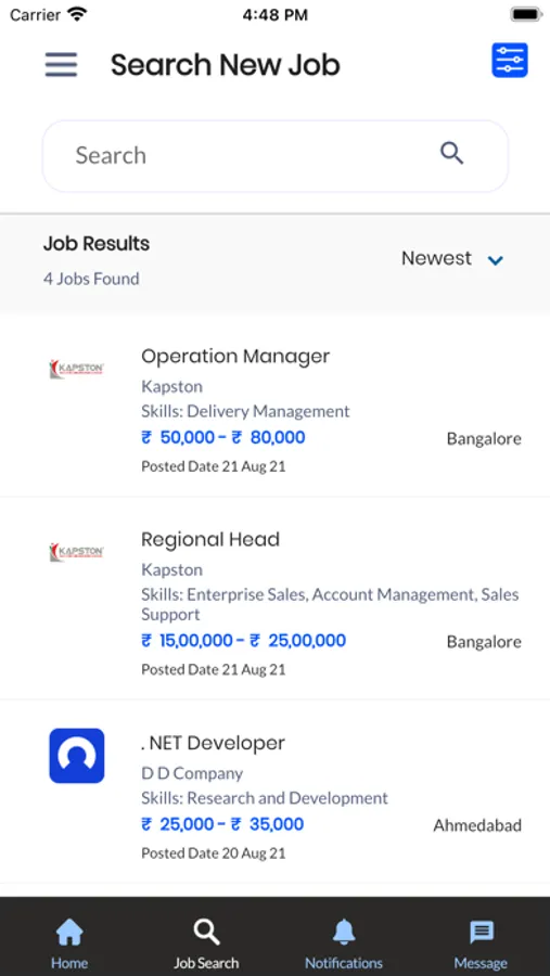 • Jobs in 7 regional languages – English, Kannada, Hindi, Telugu, Tamil, and Marathi Bengali.