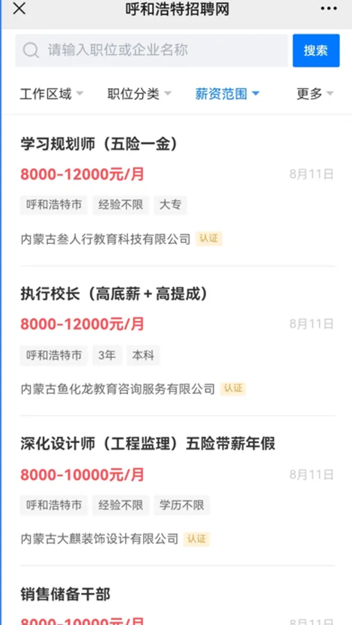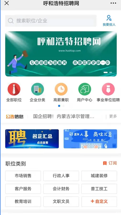 呼和浩特招聘、找工作,就上呼和浩特招聘网!海量职位,满足人才求职需求。免费发布招聘信息,为企业解决招聘难题!呼和浩特招聘网,搜索好工作!