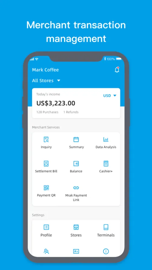 - Gives flexibility to merchants to manage store sales using their smart phone.