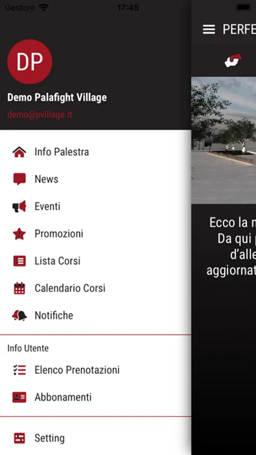 “Perfection Village” consente inoltre di inviare notifiche push per comunicare rapidamente con tutti gli associati, proponendo eventi, promozioni, news o comunicazioni di vario genere. E' inoltre possibile visualizzare il calendario completo dei corsi disponibili, il wod giornaliero, gli istruttori che compongono lo staff e altro ancora.